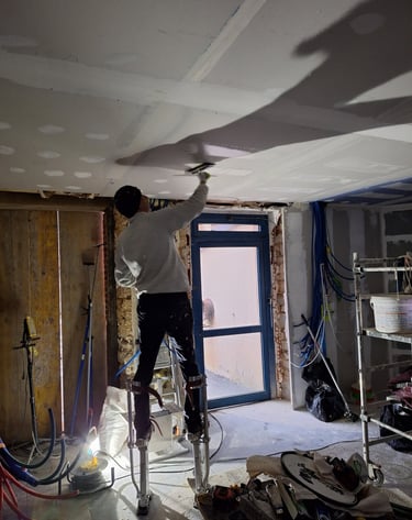 Résultat peinture plafond en blanc (peinture en train de séché)